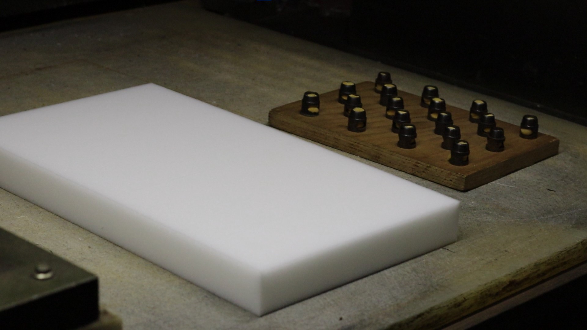 La nostra trancia a ponte ci permette di lavorare materiali come il poliuretano e derivati. Possiamo fustellare sia sagomati rigidi che morbidi, in modo da realizzare a seconda delle esigenze un qualunque tipo di lavorazione.